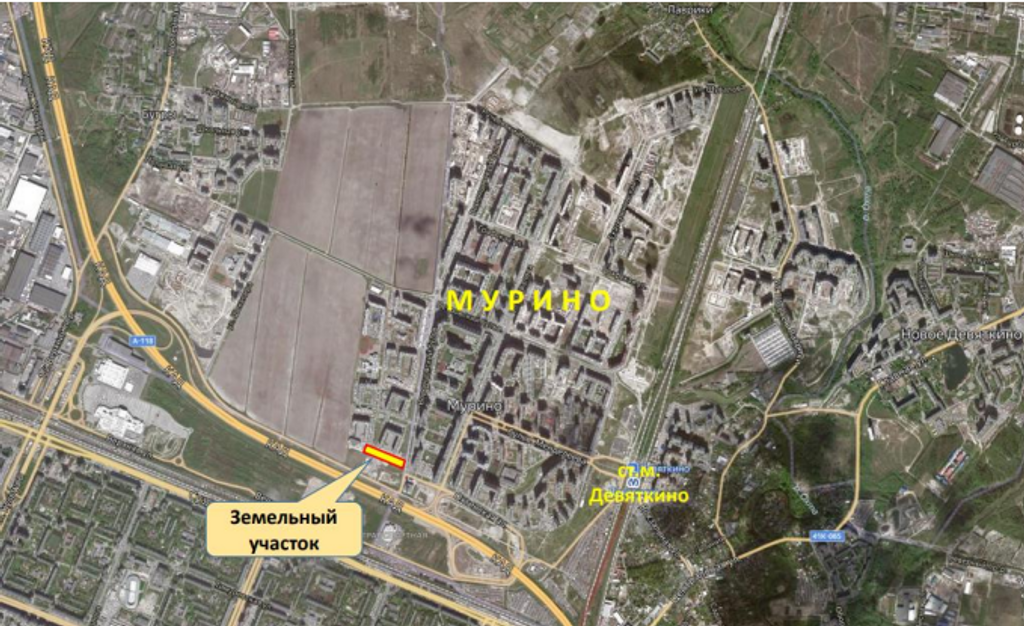 ID: 39509Район Мурино-Бугры, расположенный в северной части Санкт-Петербурга, является одним из самых динамично развивающихся жилых кластеров. Исторически эта территория формировалась как пригородная зона, но сегодня превратилась в современный район с населением свыше 200 000 человек. Земельный участок находится в окружении ключевых транспортных узлов: в непосредственной близости от КАД и станции метро «Девяткино», что обеспечивает отличную связь с центром города. Рядом проходит проектируемая автомобильная дорога Бугры-Мурино, которая усилит транспортную доступность. Окружение участка включает жилые кварталы, что создает высокий покупательский спрос для потенциального торгового комплекса. Близость социальной инфраструктуры — школ, детских садов и медицинских учреждений — подчеркивает привлекательность локации для коммерческого развития. Мурино-Бугры — это перспективное направление для инвестиций, сочетающее удобство расположения и растущий потенциал. Уникальный земельный участок площадью 1,35 га в перспективном районе Мурино-Бугры предлагает исключительные возможности для строительства торгового комплекса. Участок расположен в зоне с разрешенным использованием под магазины и торговые центры, в окружении жилого массива с населением свыше 200 000 человек. Ключевые преимущества включают отличную транспортную доступность: близость к КАД и станции метро «Девяткино», а также расположение на первой линии проектируемой дороги Бугры-Мурино. Наличие градостроительного плана и возможность подключения к инженерным коммуникациям ускоряют процесс реализации проекта. Участок идеально подходит для инвесторов, рассматривающих перспективные коммерческие проекты в развивающемся районе Санкт-Петербурга.